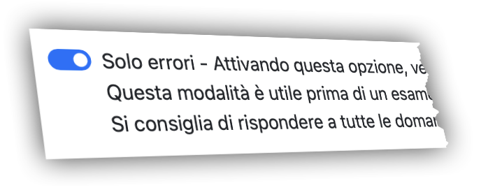 Mentre ti eserciti sui test, il sistema ha identificato le domande più difficili e, grazie al filtro "solo errori", puoi ripassare solo quelle.